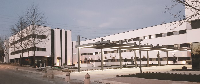 blocks in a closed area of 14,500 m² within the Esentepe Campus of Sakarya University. One of the blocks is a conference hall and foyer. In another block, there are lecturer rooms. Accounting and administrative affairs are located in the block allocated to the Dean’s Office. The other two blocks in the complex include student affairs, classrooms, distance education studio, computer room, library, prayer room and seminar halls.
